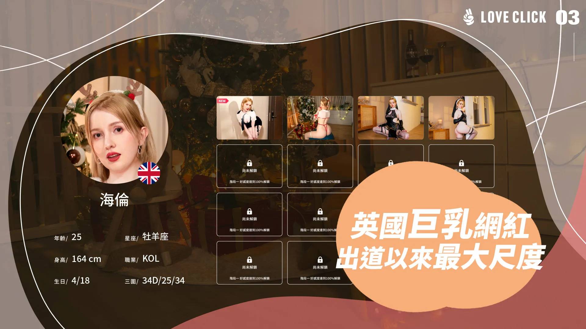 你請了一位英語家教,沒想到是來自英國的巨乳網紅 海倫白天,她身穿合身的教師裝,外表專業卻藏不住她誘人的雙乳,她認真的教著英語單詞,舌尖卻總是若有似無的舔過唇角。你看得出神,她發現了你的目光,便假裝無意的解開領口,露出雪白肌膚,故作困惑地說:「好熱啊」接著湊近你的耳畔,故意在每次示範發音時微微呻吟,讓每個字都變得炙熱難耐。夜晚換上修女服的她變得更加危險。「神會寬恕你的罪孽,但你,能寬恕自己對我的渴望嗎?」她輕輕跪在你面前,手指劃過鎖骨,露出微微顫抖的胸膛。「還不懺悔嗎?」隨著修女服的滑落,她的笑容只剩致命的挑逗。聖誕夜降臨,她化身為聖誕女郎,為你帶來無法拒絕的禮物。她將糖果輕輕送到你的唇邊,舔著自己的指尖問:「甜嗎?想不想嚐嚐其他地方更甜的滋味?」她解開裙擺的緞帶,慢慢將自己呈現為你的「專屬聖誕禮物」。